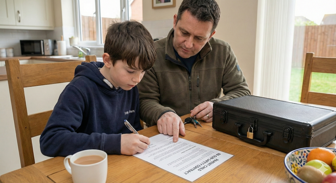 Dedicated gun safe (£60-150): Provides the highest security and demonstrates serious commitment to safe storage. Works well for families considering multiple guns or long-term involvement.